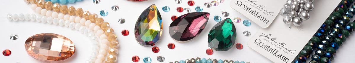 An exclusive to John Bead, Crystal Lane features sparkling crystals in a broad spectrum of colors. The collection includes our Twisted Crystal strands, a curated combination of pearls and crystals. We have glass bead double strands (7 inches) for twice the beads in some stunning clear, opal and opaque colors. Our strands have also inspired a brand new collection of glass pendants in colors to match. Finally, we added flat back rhinestones to add shimmer and color to clothing, footwear, home décor and paper crafts.